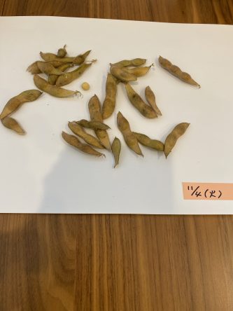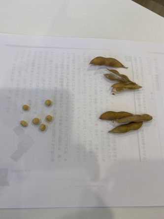 収穫した大豆を乾燥させて、利用者さんと一緒に種取りを行ないました。